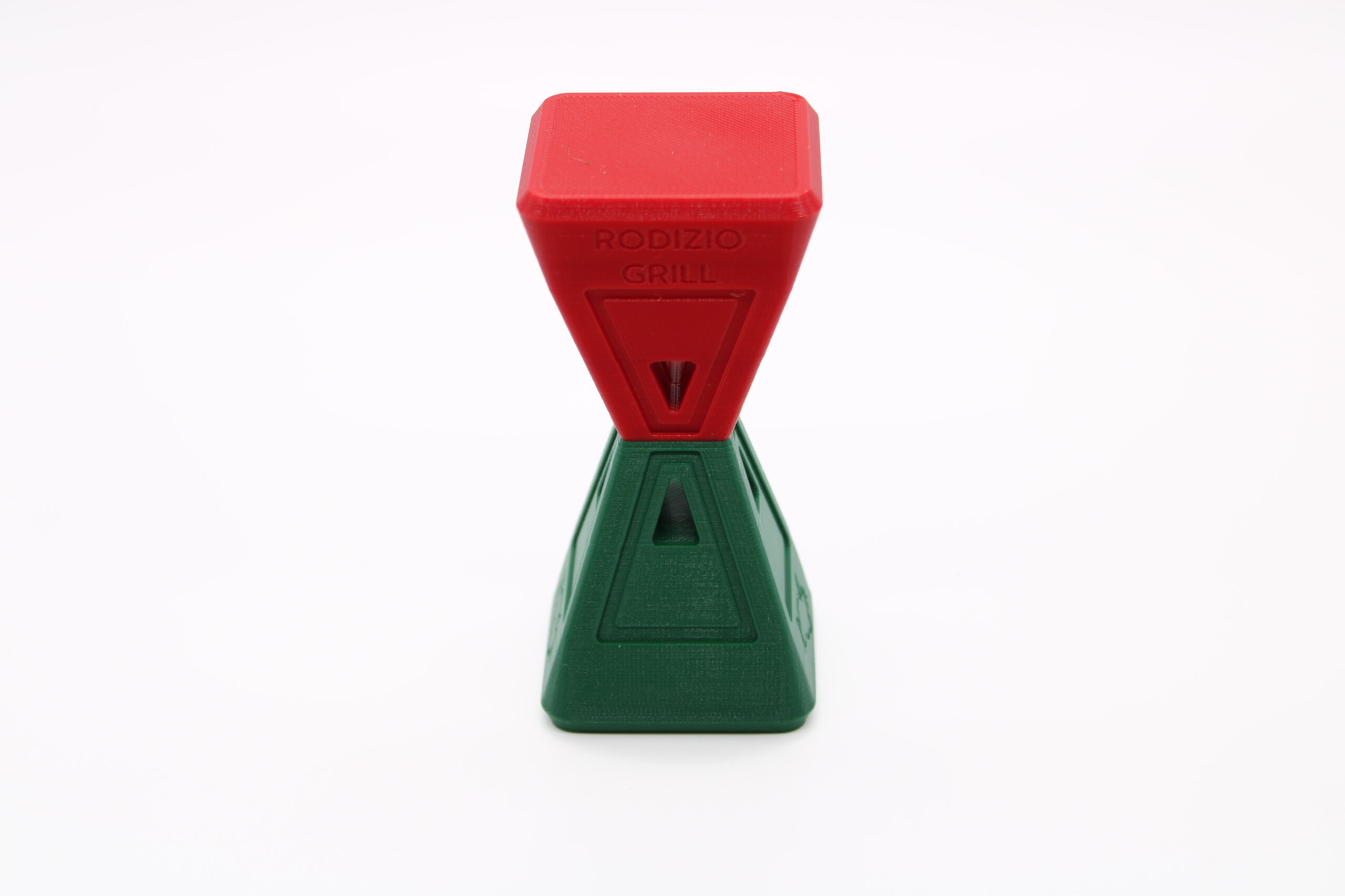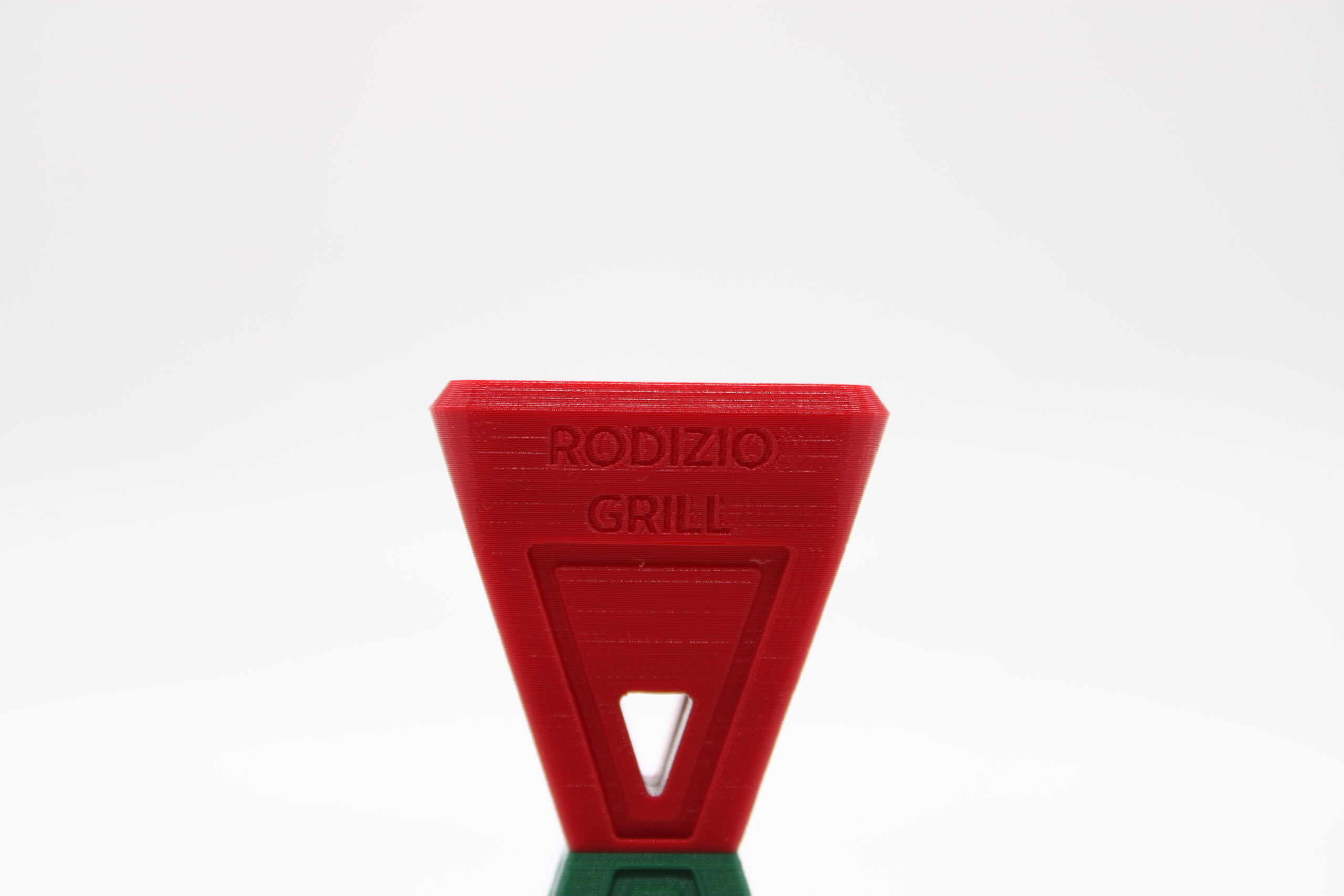 The new and improved Rodizio Grill Cue V2. Modified and engineered to withstand greater impact force and stress. Tested and proven to withstand center shearing stress and fatigue. 3D Printed in house. Custom designed and made for durability and elegance.